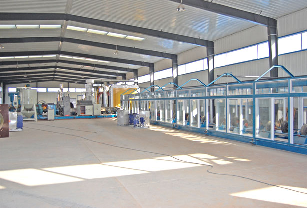 3PE纏繞作業(yè)線:采用靜電噴涂原理,潔凈且具有一定粗糙度的鋼管旋轉(zhuǎn)的通過中頻加熱室,使管體達到一定溫度后,隨即進入粉末噴涂室,利用流化床、靜電發(fā)生器及噴槍向鋼管表面噴涂形成所需的涂層厚度;再通過擠出機,分別擠出膠粘齊、聚乙烯纏繞到螺旋前進的鋼管上。再經(jīng)水冷系統(tǒng)、在線檢測,管端打磨,即為成品管。